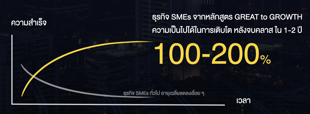 GREAT to GROWTH มุ่งเน้นการช่วยผลักดันให้ธุรกิจกลายเป็นแบรนด์ที่ยั่งยืน ผ่านการสร้างผลลัพธ์ที่สามารถเห็นผลได้ในระยะสั้น และสร้างอิมแพคให้กับแบรนด์ในระยะยาว คุณจะได้เรียนรู้จากประสบการณ์จริง ได้ลงมือทำ และสามารถเห็นผลทันที ในระยะเวลา 1-3 ปี ผ่านความเข้าใจวิธีคิด วิธีการ